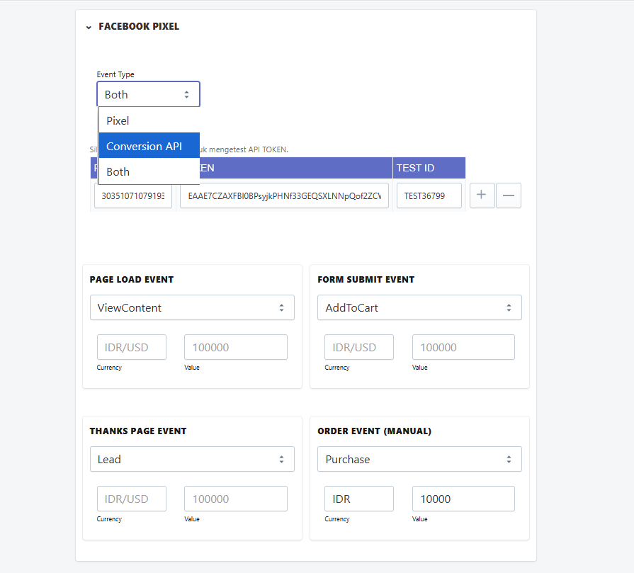 Event Type : Pilih antara conversion API atau BOTH
