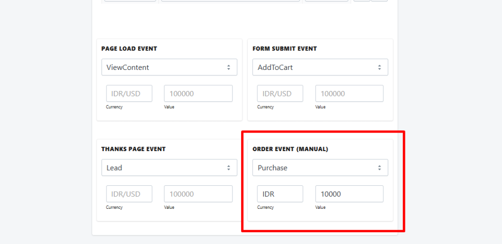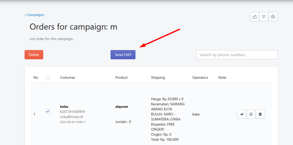 Fitur ini tersedia di campaign form. Fitur ini membantu user untuk bisa memilih data order dan mengirimkannya ke meta sebagai event PURCHASE secara manual.