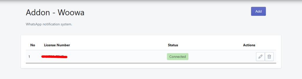 4. Nomor whatsapp di woowa yang sudah terhubung ke loops akan berstatus CONNECTED