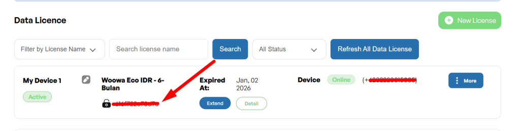3. Masukan license woowa ( didapat dari akun woowa) ke kolom Your license kemudian klik Save